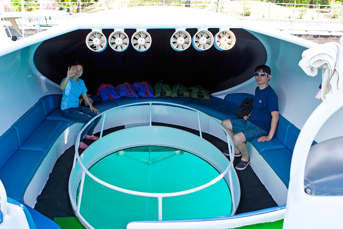 물에 젖지않고 팔라우의 바닷속을 보고 싶거나 유아나 어르신을 동반하신 일행 또는 수영이 부담스러운 분들에게 적합한 투어로서 매우 안전하고 가볍게 즐길 수 있습니다. 직영 2.5m의 유리창이 바닥에 있는 글라스 보트를 타시고 약 2시간 반 동안 아름다운 락아일랜드의 수중세계를 천천히 산책하는 즐거움을 느끼실 수 있습니다.